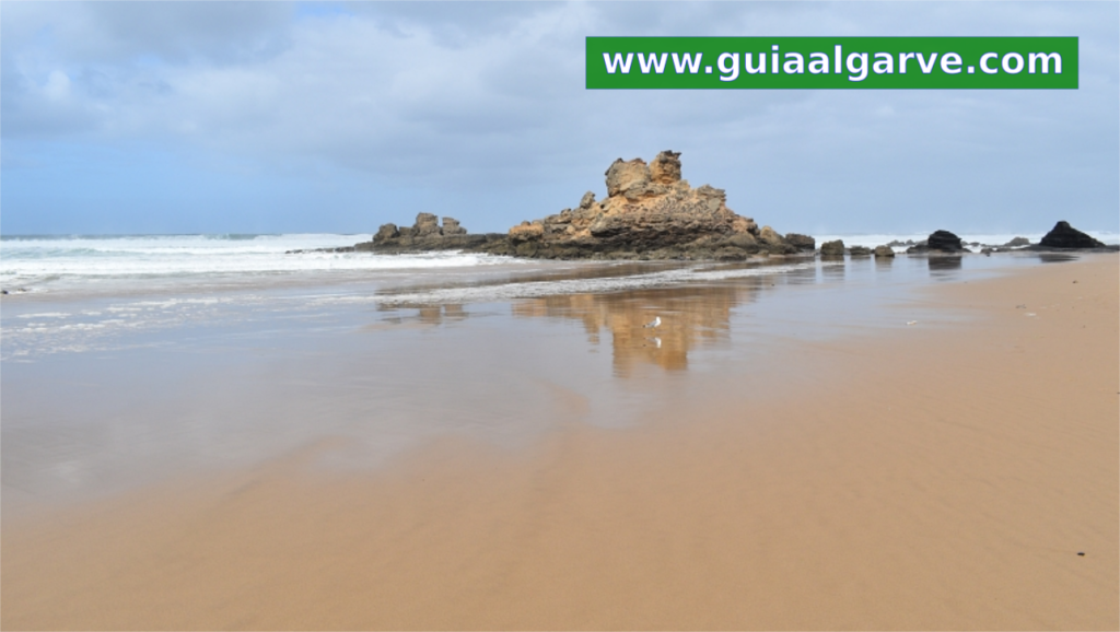 O seu nome deve-se a um rochedo isolado que se ergue no mar como um pequeno castelo, criando um cenário único que, na maré baixa, se abre para longos passeios pelas areias vizinhas.